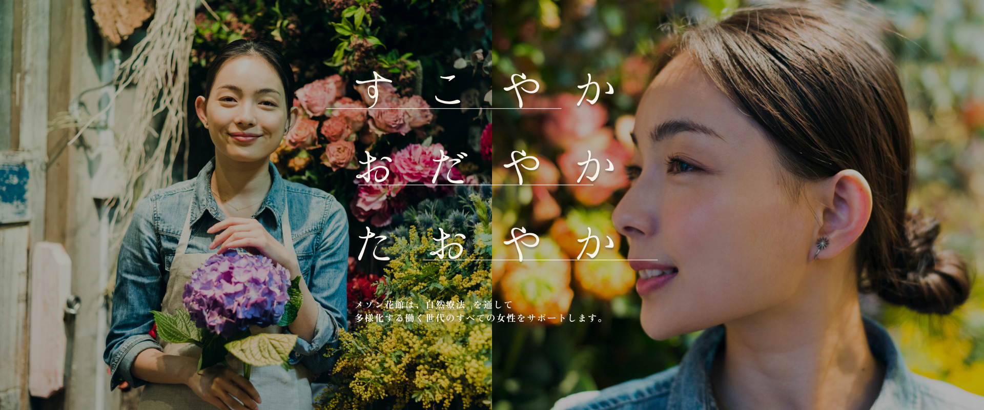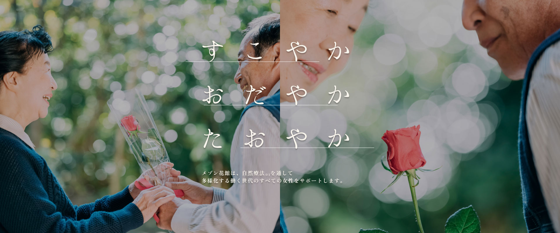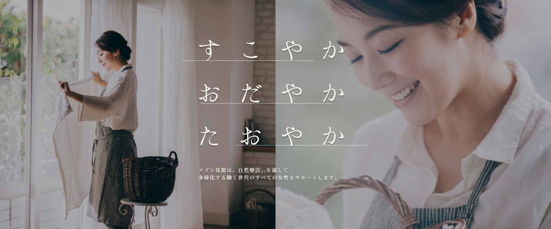 あなたの大切なお身体に触れるものだから、メゾン花館では自然療法にこだわりました。コンプライアンスが過熱している社会から離れたプライベートサロンが心身を癒すことでしょう。オールハンドによるオイルマッサージやアロマを使ったトリートメントで、真心が伝わる施術をお届けします。そして、日本初の『こんにゃく』を使った温湿布でじんわり温まる癒しのひとときをご堪能ください。